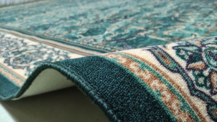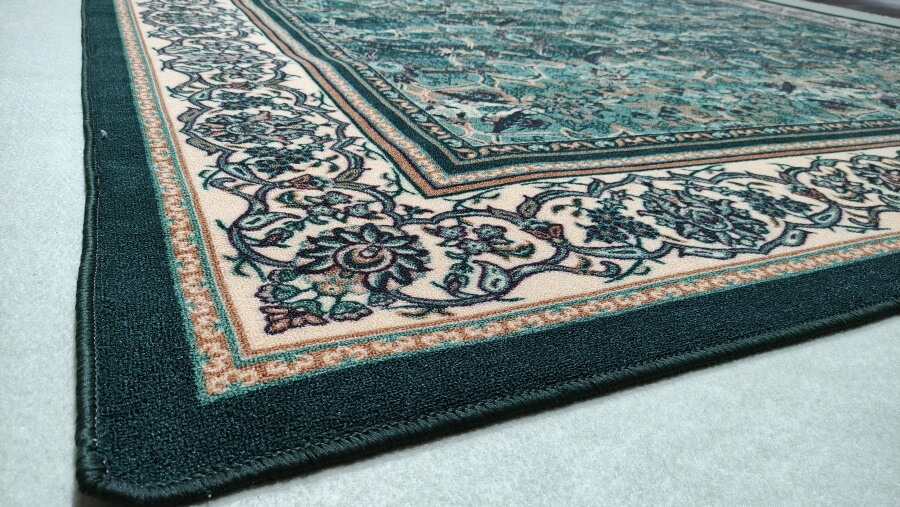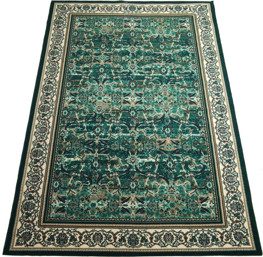 Зеленый классический ковер на теплой основе. Отсутствие центрального рисунка и заполненное орнаментом поле