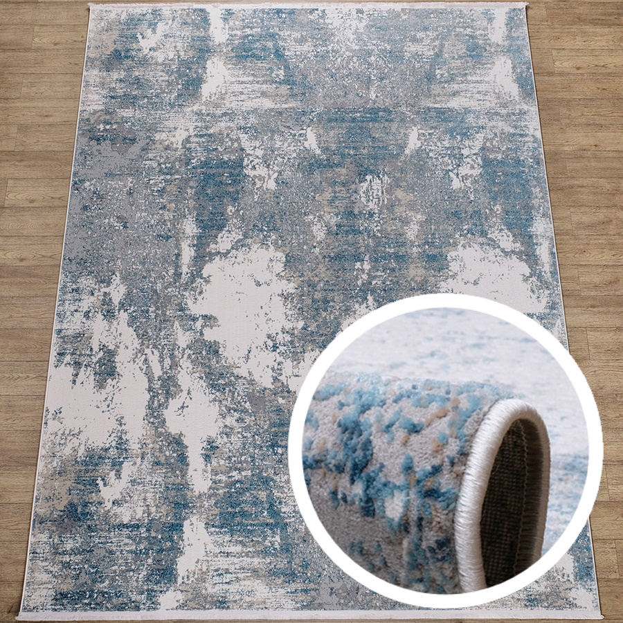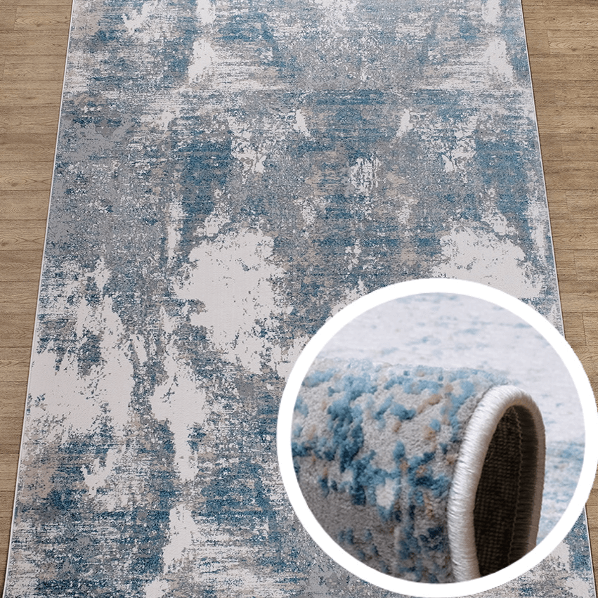 Ковровая дорожка с синим абстрактным рисунком с 3D эффектом. Нежный и практичный ворс повышенной плотности