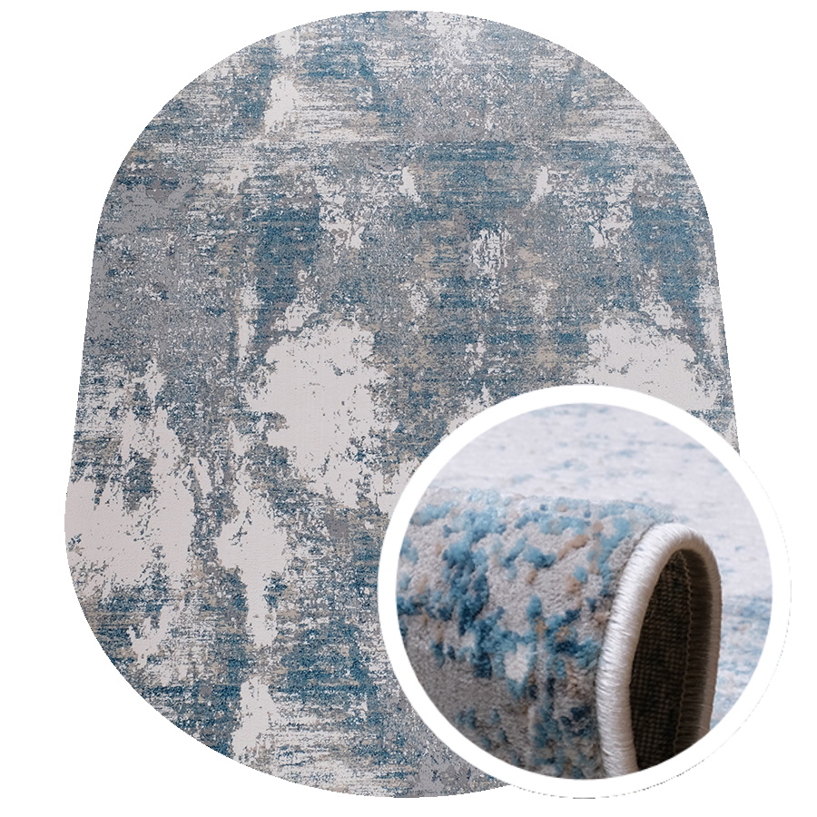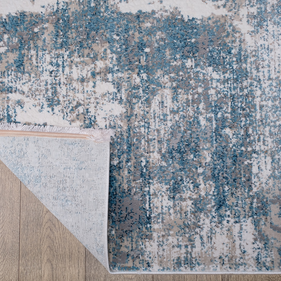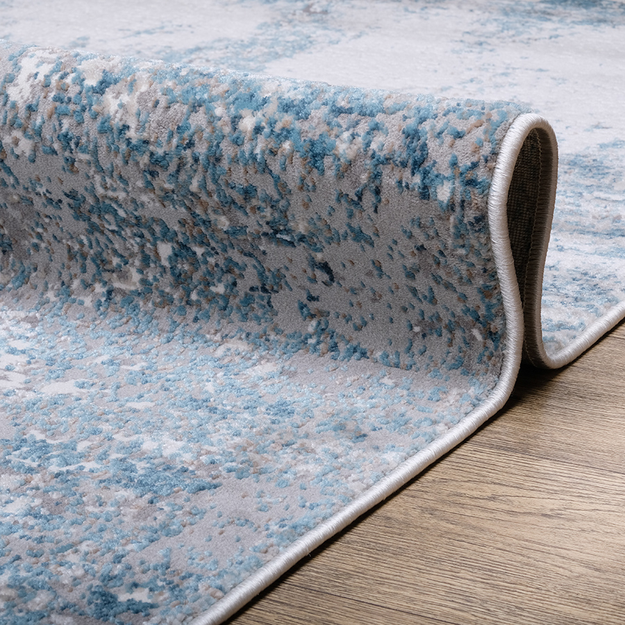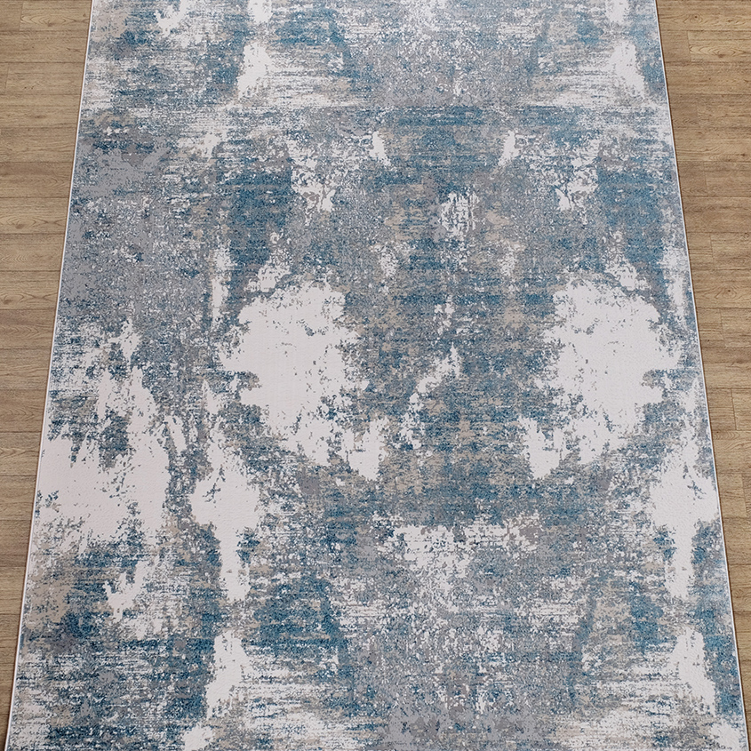 Ковер с синим абстрактным рисунком с 3D эффектом. Нежный и практичный ворс повышенной плотности