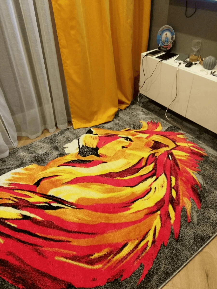 Где плюхнулся — там и дом! Ковёр Лев. Огненный красно оранжевый лев на сером фоне. Рисунок четкий ровно на столько, чтобы это смотрелось потрясающе!